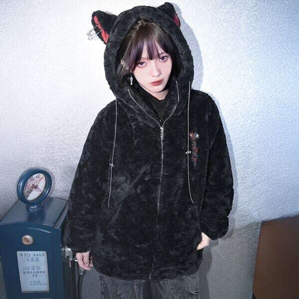 猫耳フーディジップアップトグルボタンモフモフサブカルコート(2カラーあり)(lli_5307)