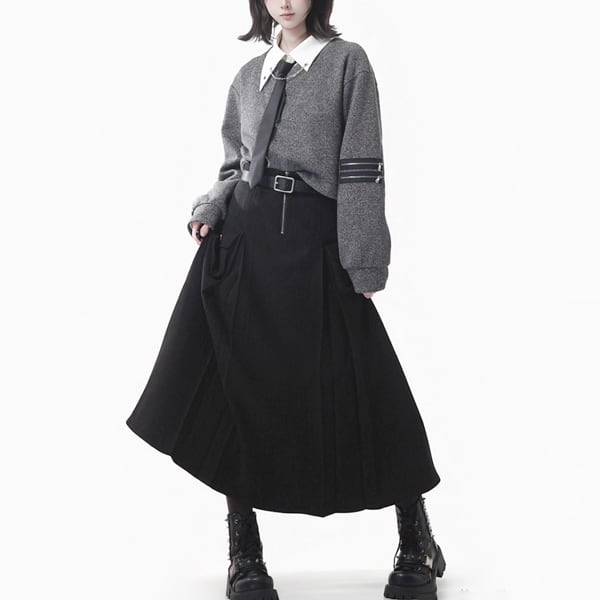 ★【RECOMMEND】【RANKING2】ハトメロザリオジッパーストラップアシメデザインパンクシャツ(2カラーあり)(lli_6174)