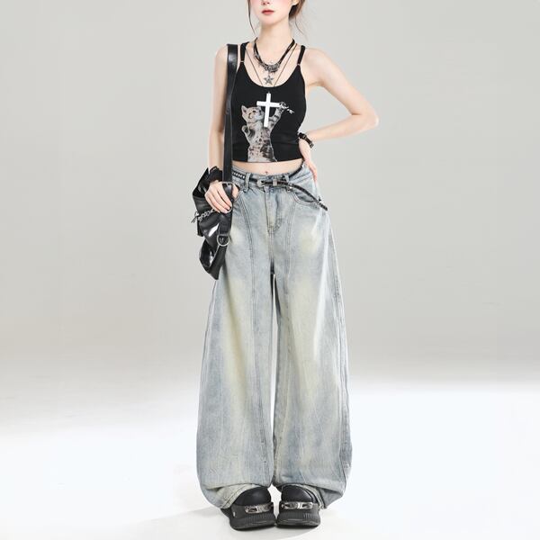 ウォッシュドワイドストレートビンテージデニム(lli_5616)