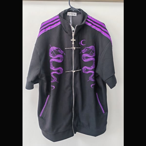 ショートスリーブロザリオジッパーダブルスネーク刺繍グラフィックショートスリーブジャージジャケット(2タイプあり)(lli_5787)