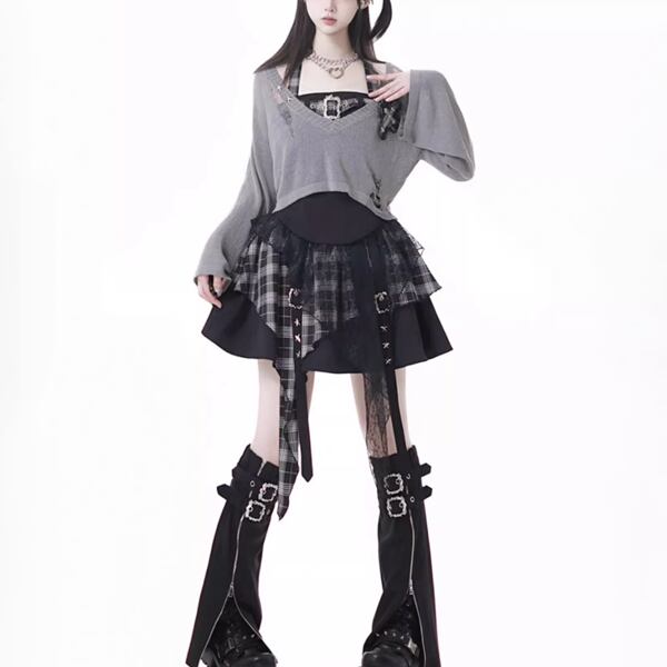 ▼スカート(チェックレイヤードバックルストラップスカート(2パターあり)(lli_6205))は以下からご覧ください▼