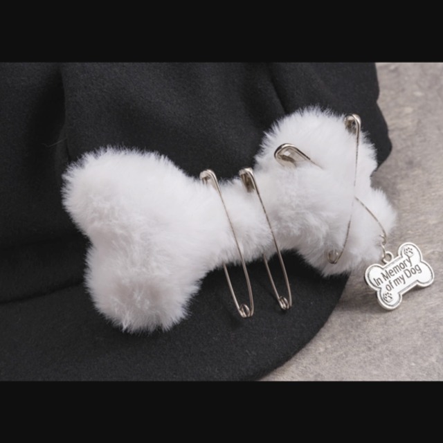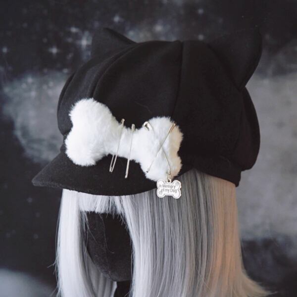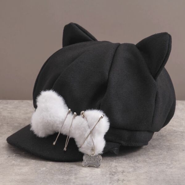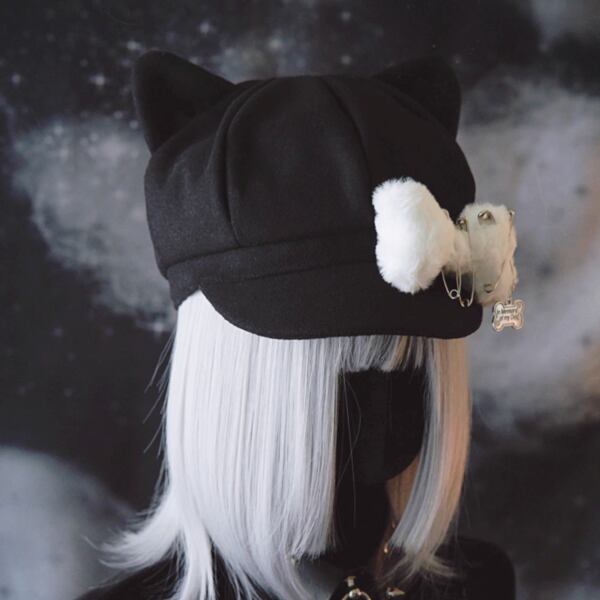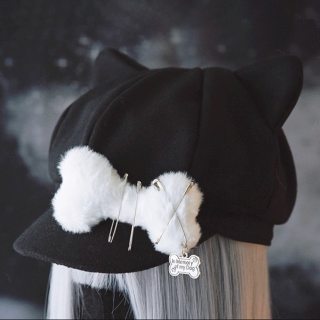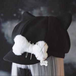 猫耳ブラックキャットもふもふドッグボーン安ピンキャップ(lli_6009)
