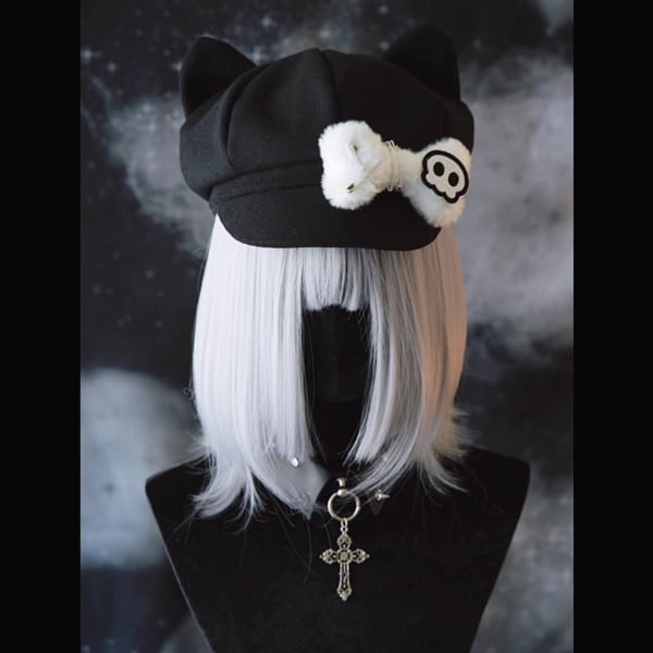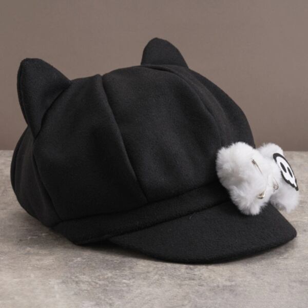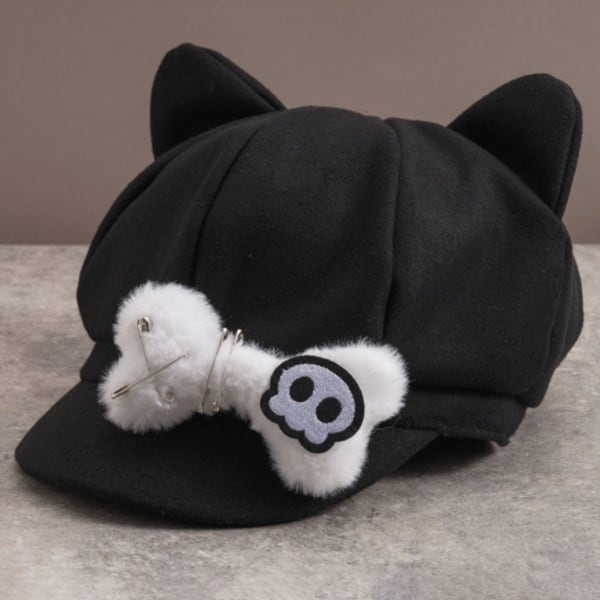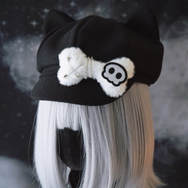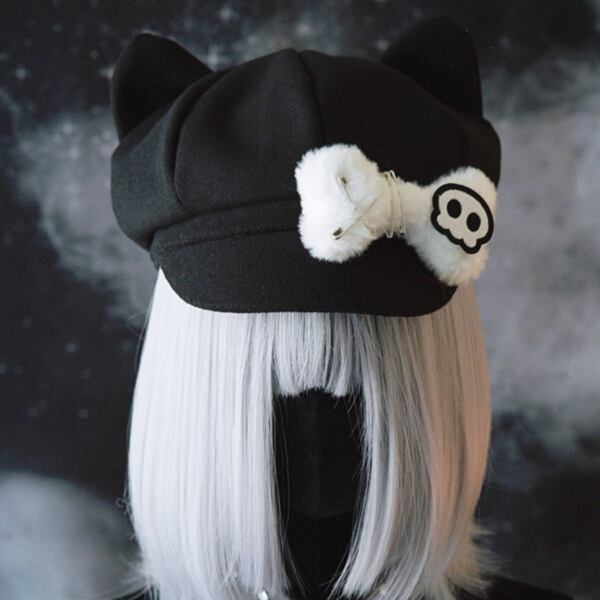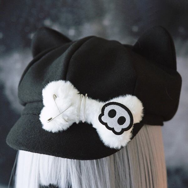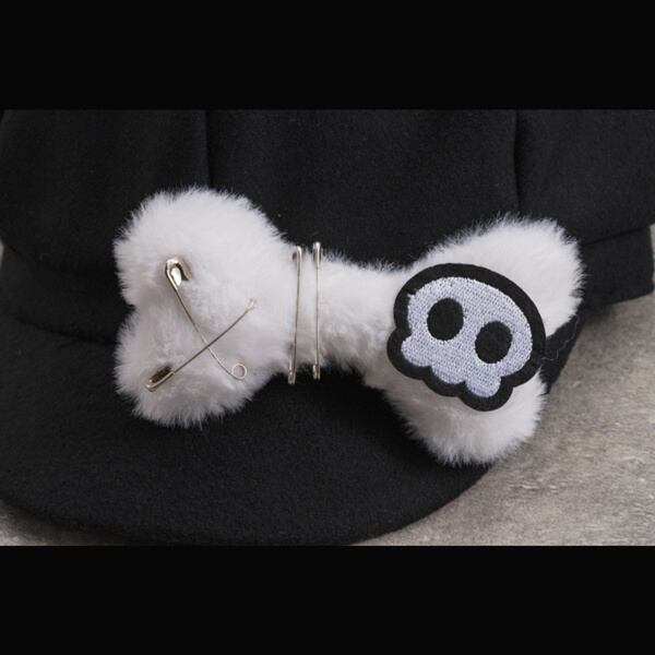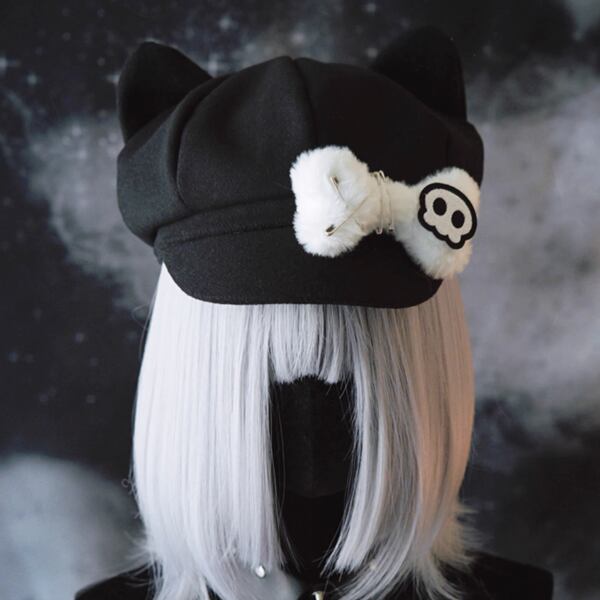 猫耳ブラックキャットもふもふドッグボーンスカルパッチ安ピンキャップ(lli_6010)
