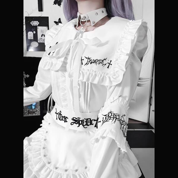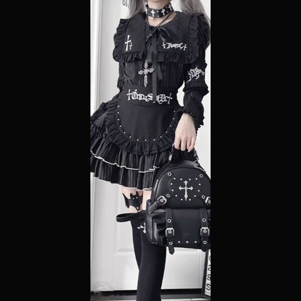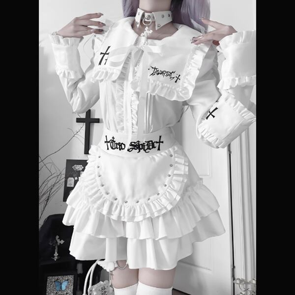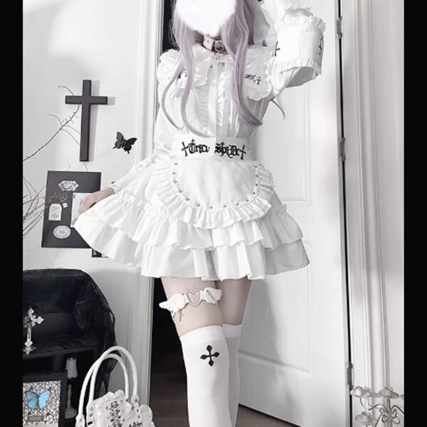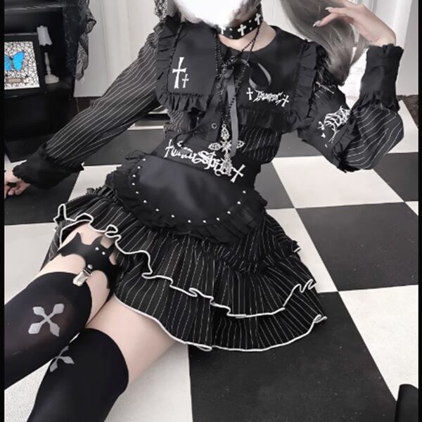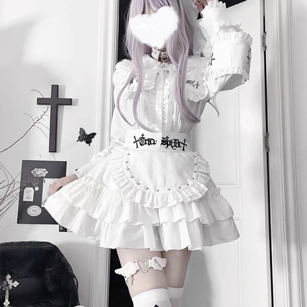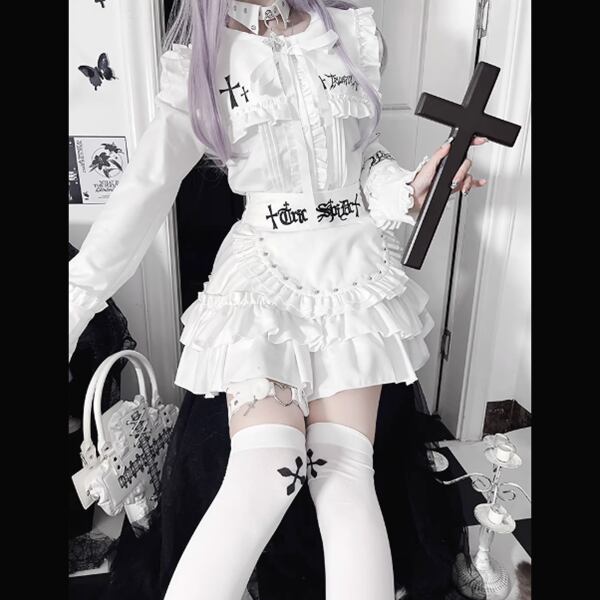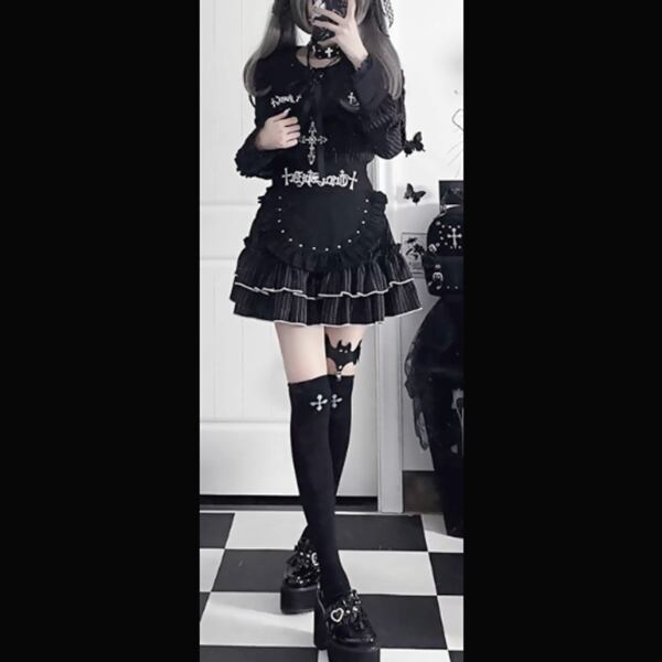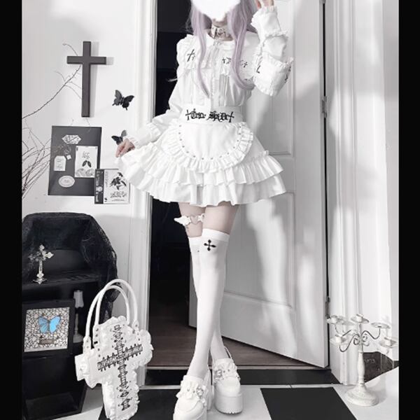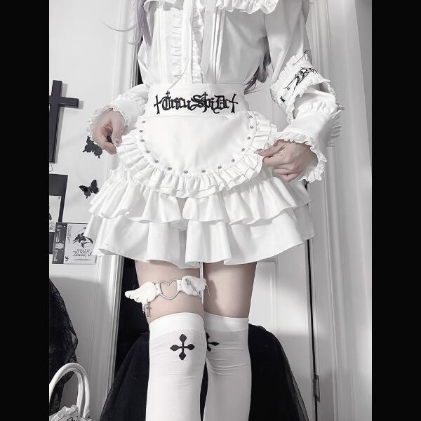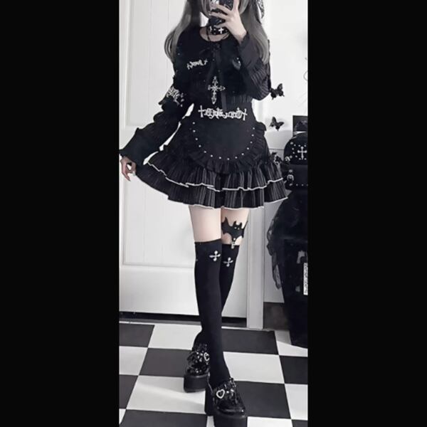 ティアード刺繍ロゴフリルエプロンゴシックスカート(2パターンあり)(lli_6021)