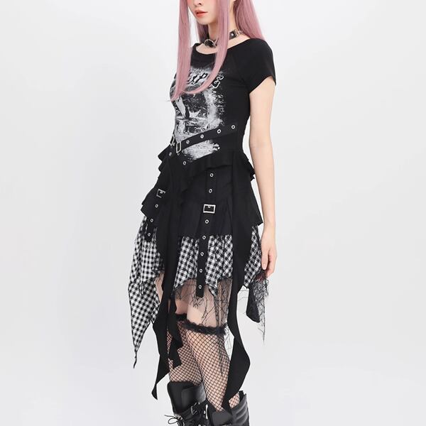 ▼スカート(アシメレイヤードチェックパターンブラックパンクスカート(2カラーあり)(lli_6034))は以下からご覧ください▼