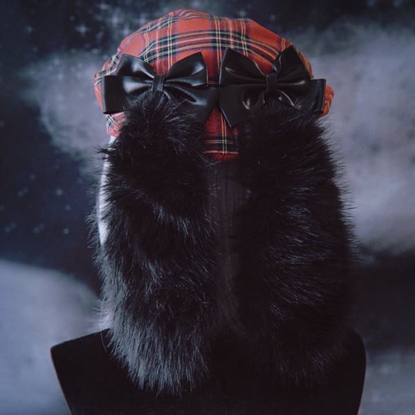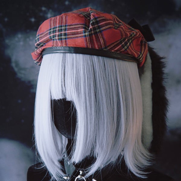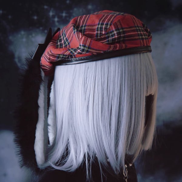 うさ耳ブラックリボンレッドチェックキャップ(lli_6060)