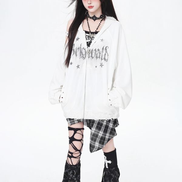ショルダースリットダメージフーディジップアップパーカー(2カラーあり)(lli_6134)