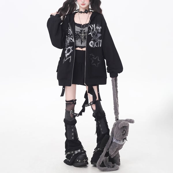 ダメージスターパッチジップアップフラップポケットパーカー(2カラーあり)(lli_6144)