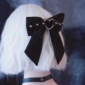 ハートスタッズブラックリボンヘアアクセ(lli_6157)