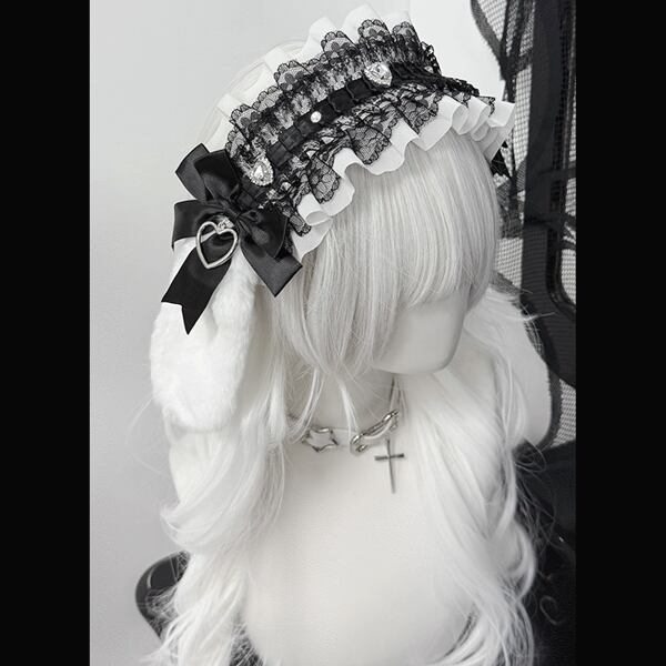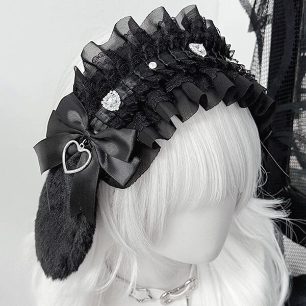 ウサ耳ハートリボンレースヘッドドレスヘアアクセ(3カラーあり)(lli_6164)