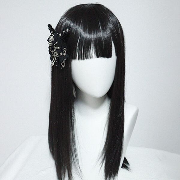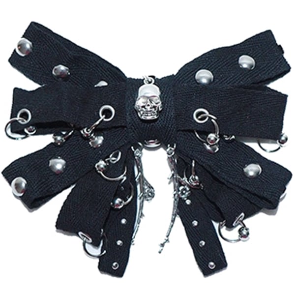 スカルスタッズリングブラックリボンペアヘアアクセ(lli_6167)