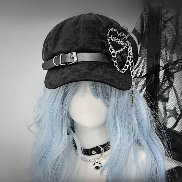 ▼猫耳バージョン(ハートパッチクロスチェーンアクセ猫耳ブラックキャップ(lli_6163))は以下からご覧ください▼