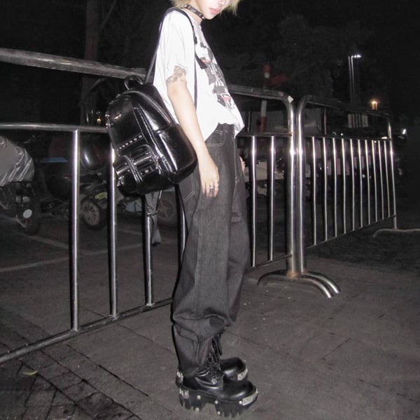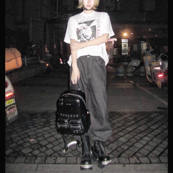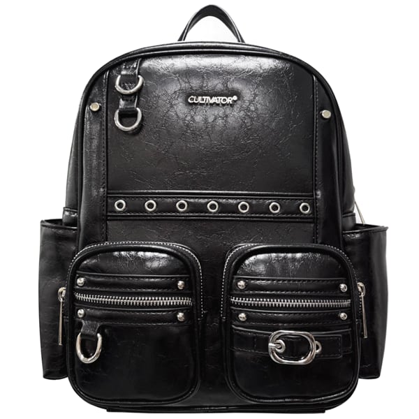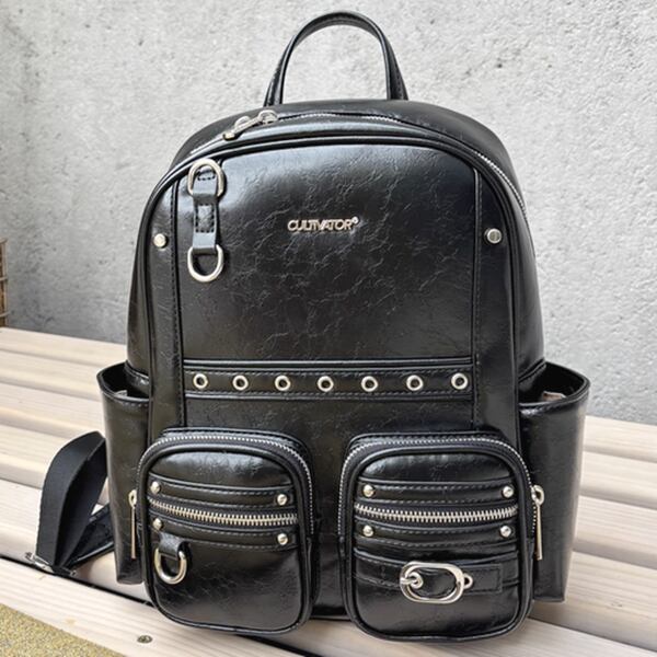 ハトメデザインダブルジッパーポケットPUバックパック(2カラーあり)(lli_6178)