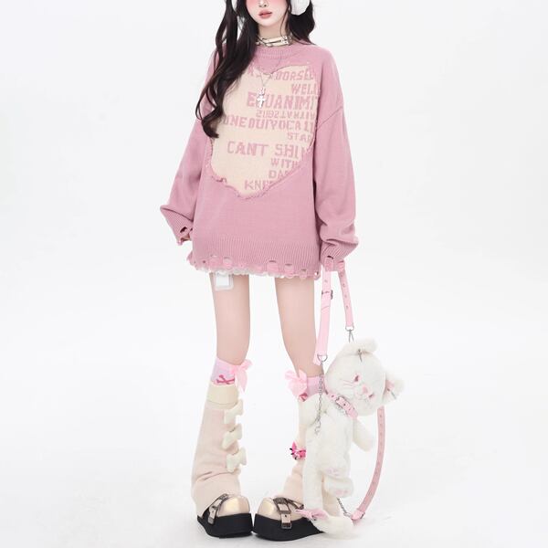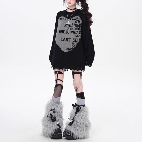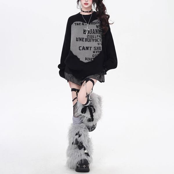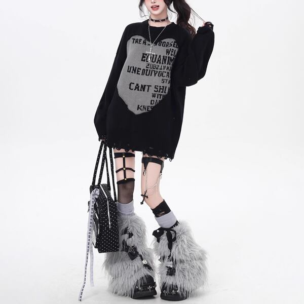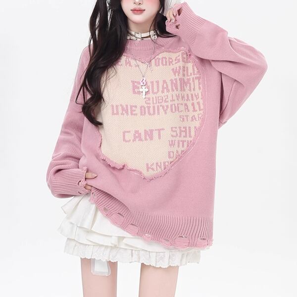 ダメージフェイクレイヤードロゴニット(2カラーあり)(lli_6179)