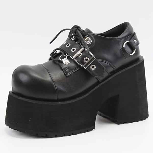 レースアップバックルストラップボリュームハイヒールシューズ(lli_6192)