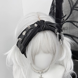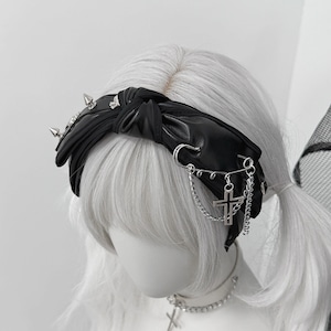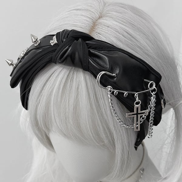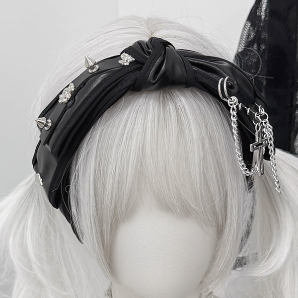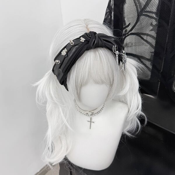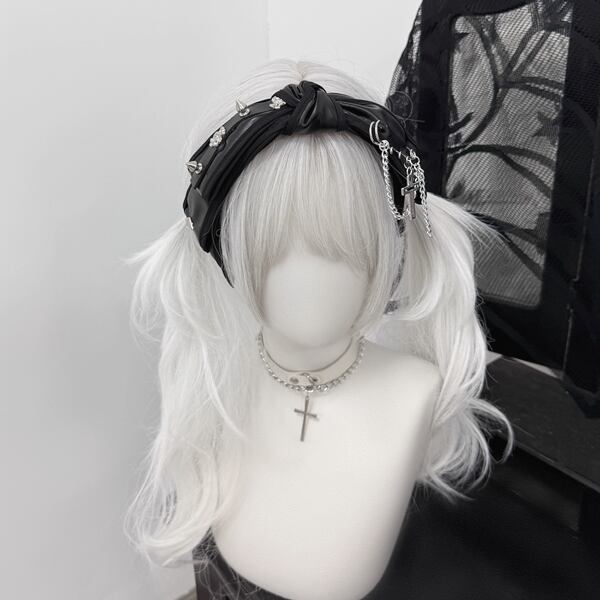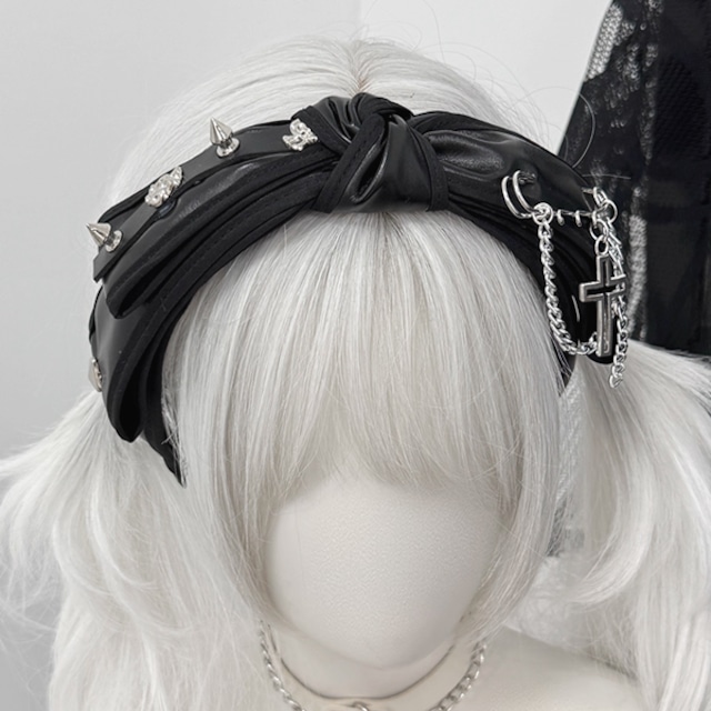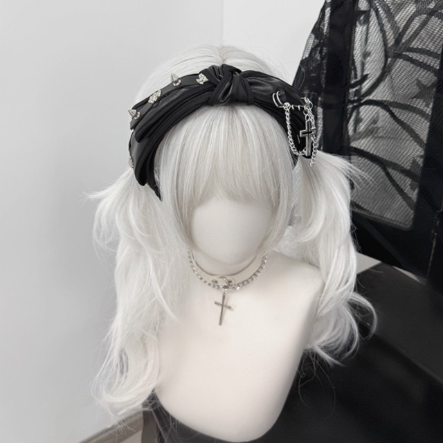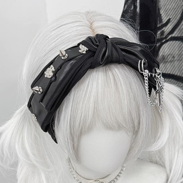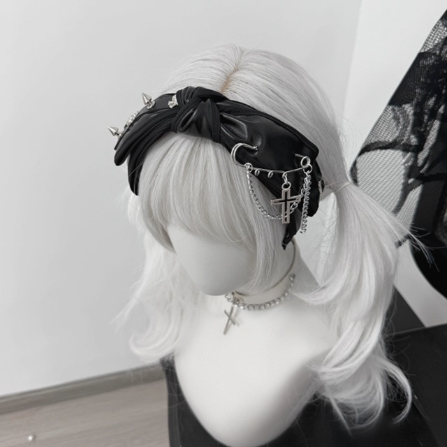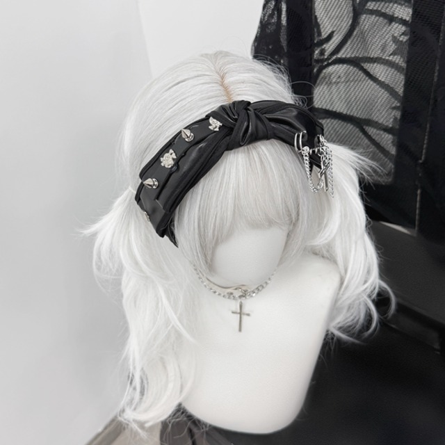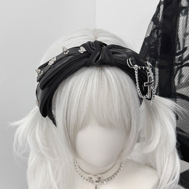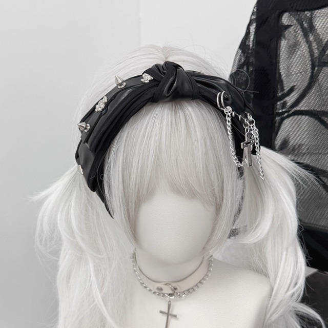 ツイストスタッズチェーンPUリボンカチューシャ(lli_6194)