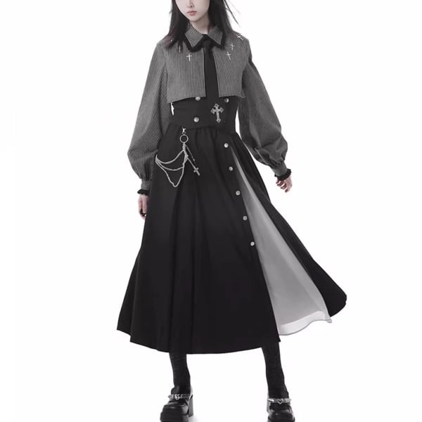 ▼シャツ(ネクタイ付ストライプクロスフリルカラーゴシックシャツ(lli_6199))は以下からご覧ください▼