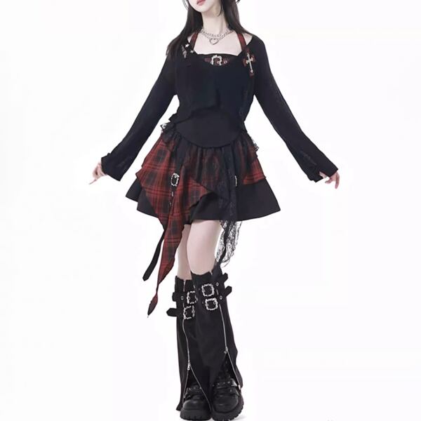 チェックレイヤードバックルストラップスカート(2パターあり)(lli_6205)