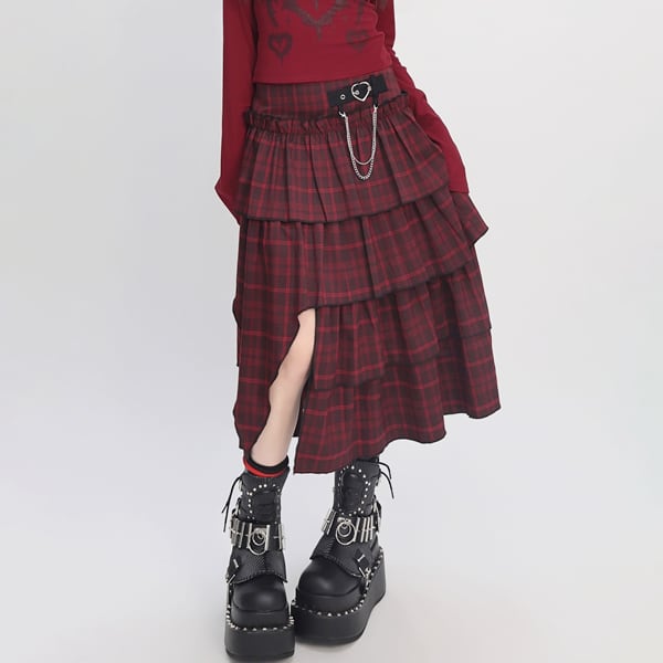 スリットティーアドレッドチェックスカート(lli_6215)