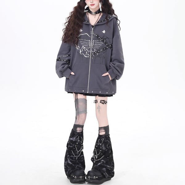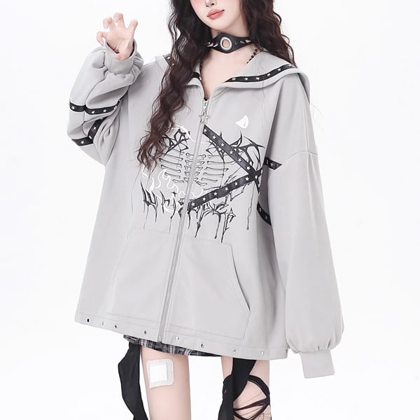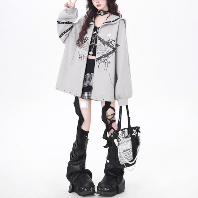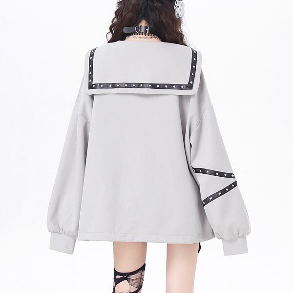 アシメストラップデザインジップアップセーラーカラージャケット(2カラーあり)(lli_6230)