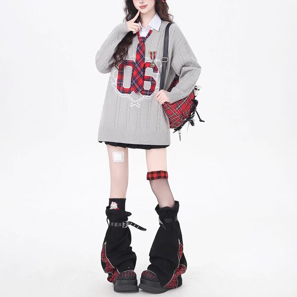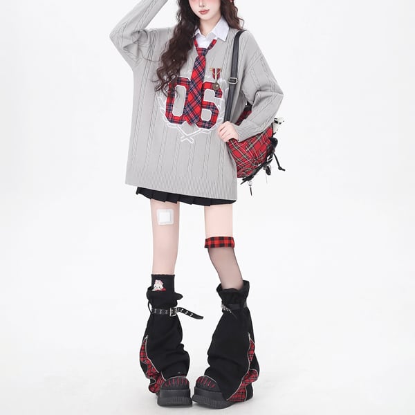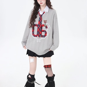 フェイクレイヤードスクールテイストニットシャツ(2カラーあり)(lli_6234)