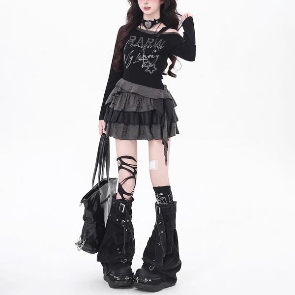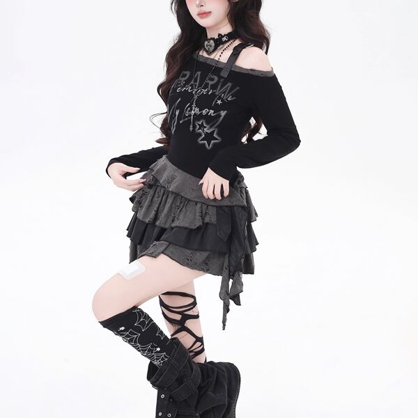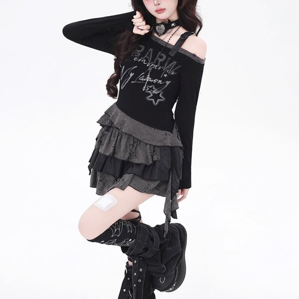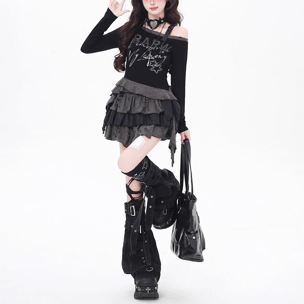 オフショルストラップロングスリーブスリムカットソー(lli_6239)