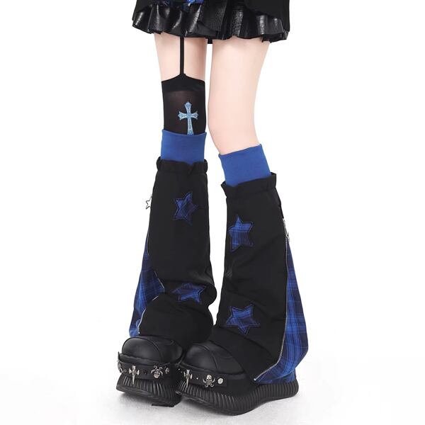 サイドスリットジッパーチェックパターンレッグカバー(3パターンあり)(lli_6241)