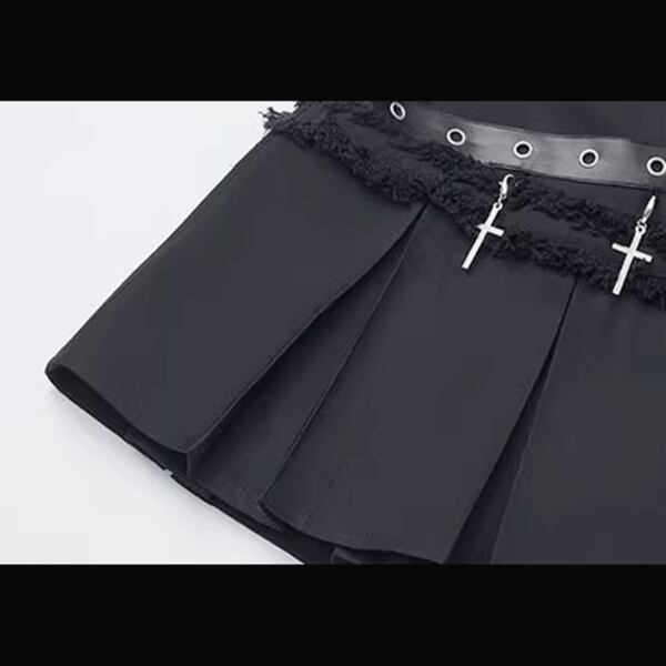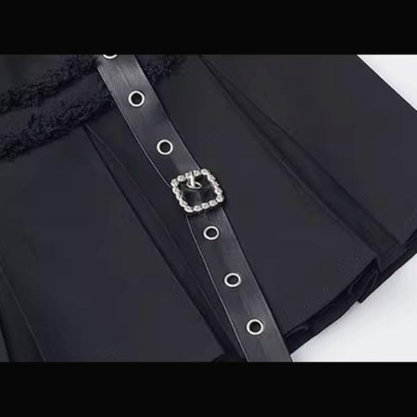 ハトメストラップベルトプリーツスカート(lli_6246)