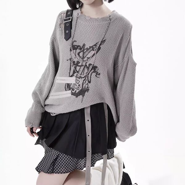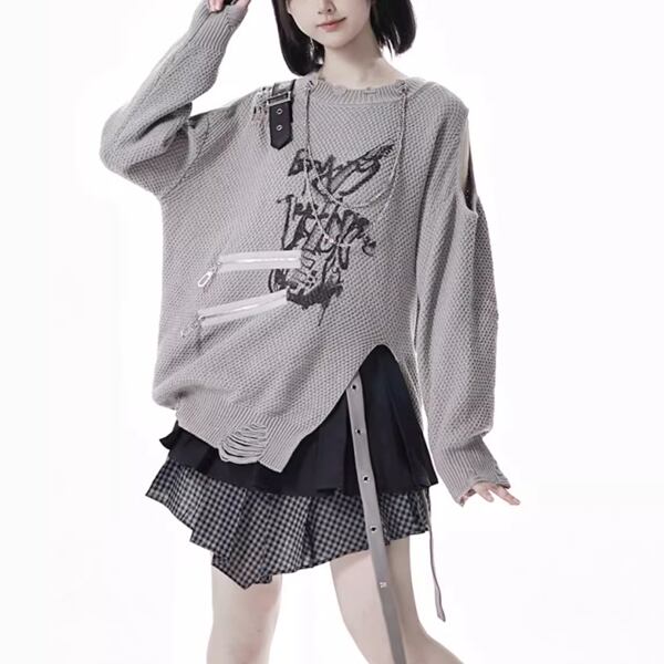 ▼ダメージニット(オフショルチェーンアクセベルトジッパーダメージグレーニット(lli_6248))は以下からご覧ください▼