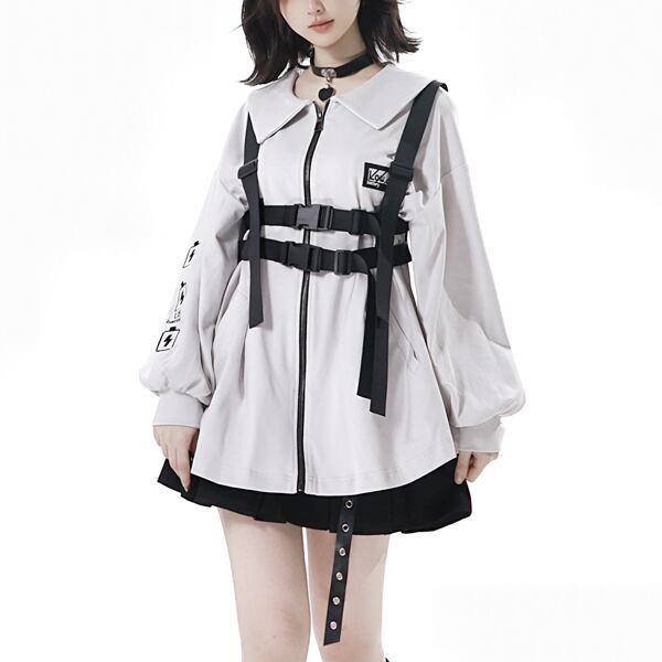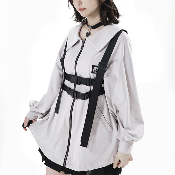 バッテリースリーブ襟付きジップアップトップス(lli_6261)