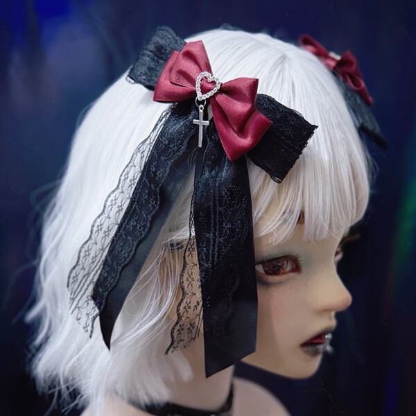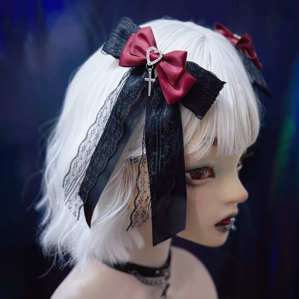 レッドブラックレースハートクロスヘアアクセ(lli_6281)