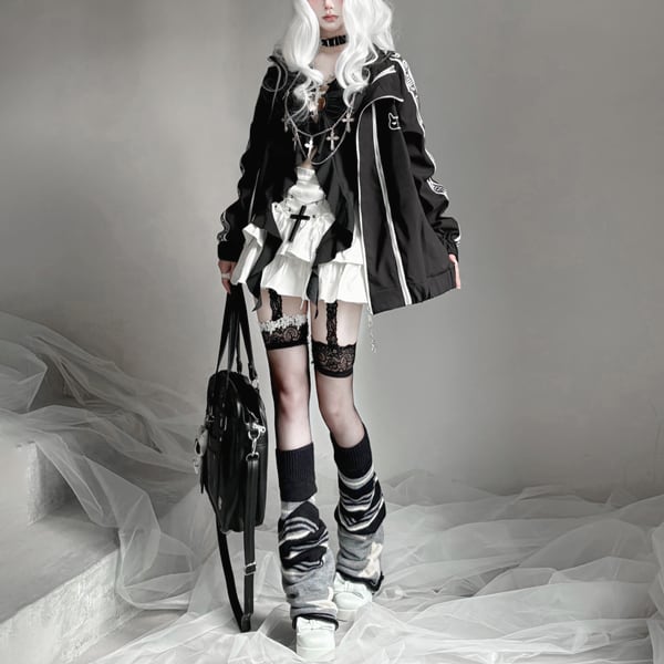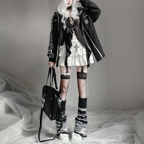 ダブルジッパースリーブロゴキャットジャケット(lli_6289)