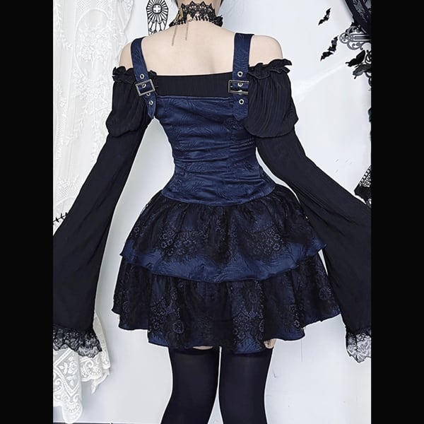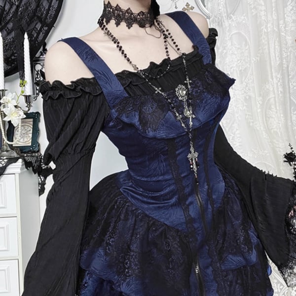 ティアドロップジェムブローチジッパーワンピース(lli_6302)