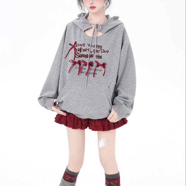 レッドリボンアクセフーディプルオーバー(2カラーあり)(lli_6323)