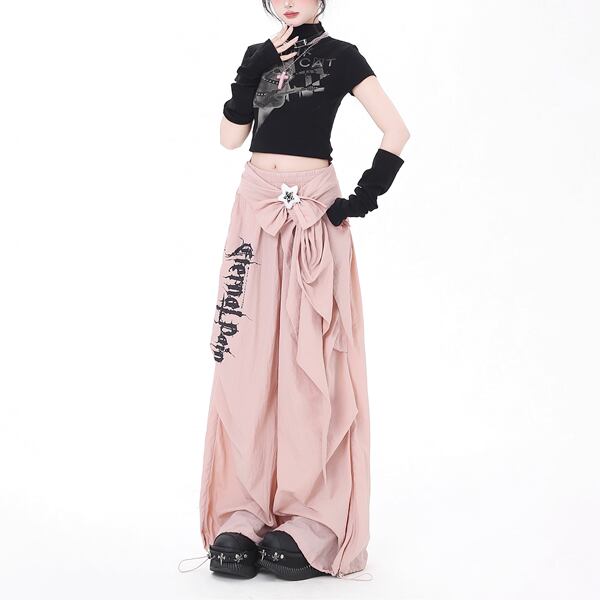 ウエストストラップワイドレッグメタルロゴパンツ(2カラーあり)(lli_6324)