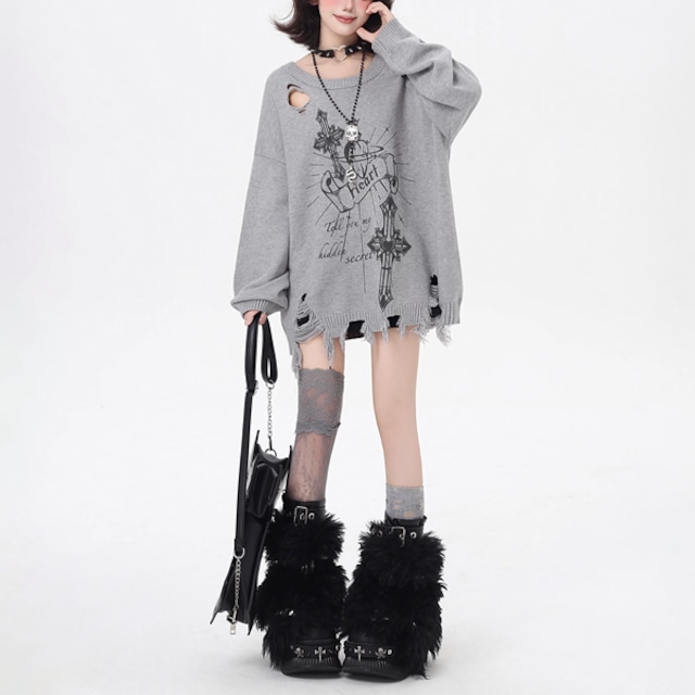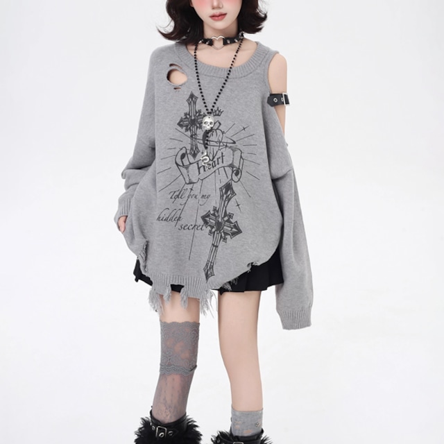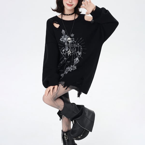 ワンオフショルストラップクロスダメージニット(2カラーあり)(lli_6329)