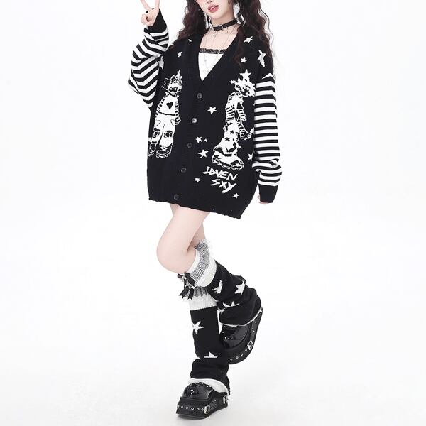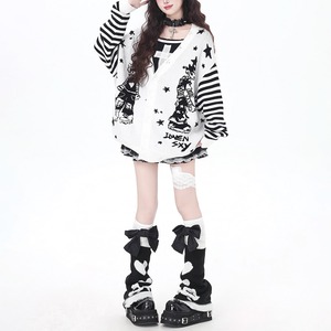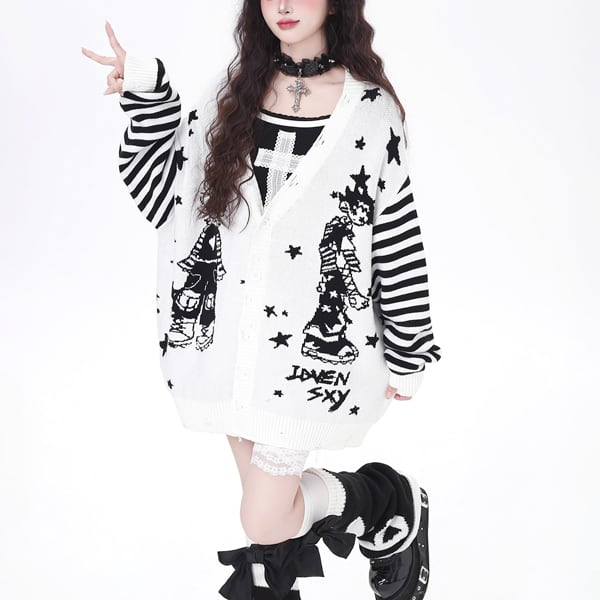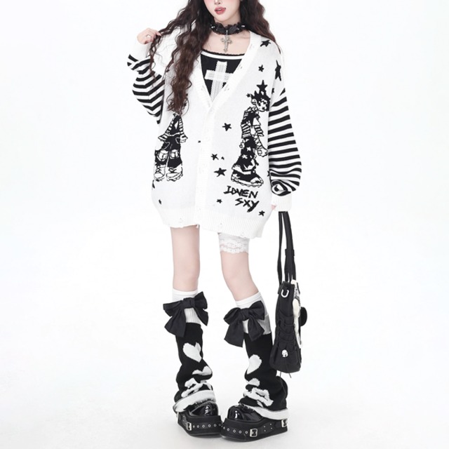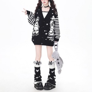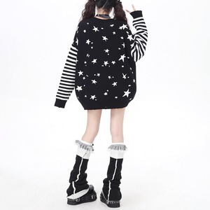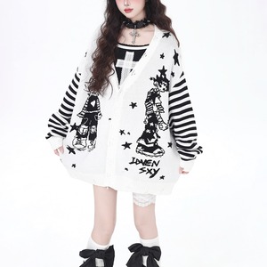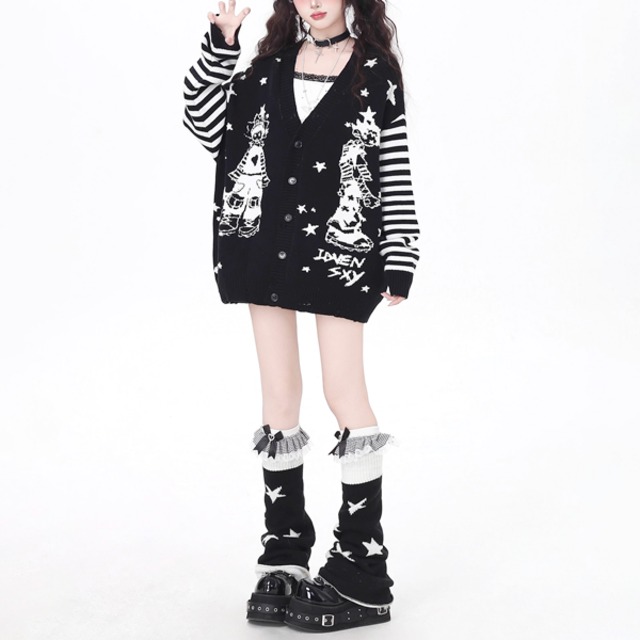 ボーダースリーブスターパターンサブカルパンクボタンカーディガン(2verあり)(lli_6339)