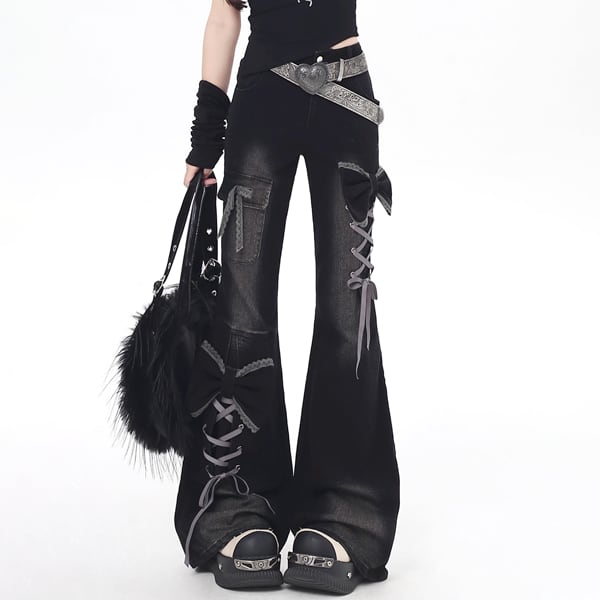 レースアップフレアリボンデニム(lli_6362)