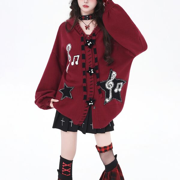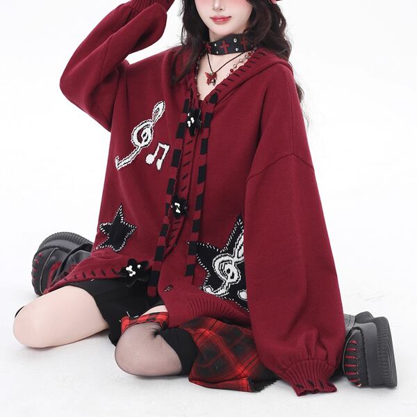 ボーダーコードフーディニットボタンカーディガン(2カラーあり)(lli_6364)