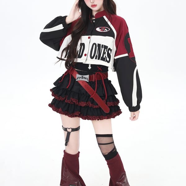 ブラックレッド2wayショートロングレーサーボタンジャケット(lli_6375) | lunaly