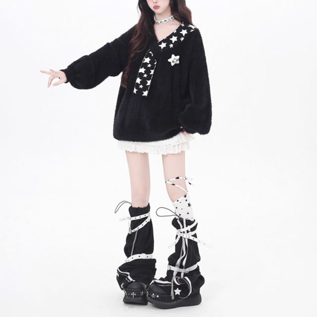 フェイクマフラーネックプルオーバーニット(2カラーあり)(lli_6377)