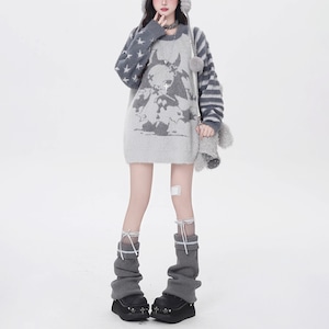 アシメパターンスリーブデビルモンスターグラフィックニット(2カラーあり)(lli_6378)