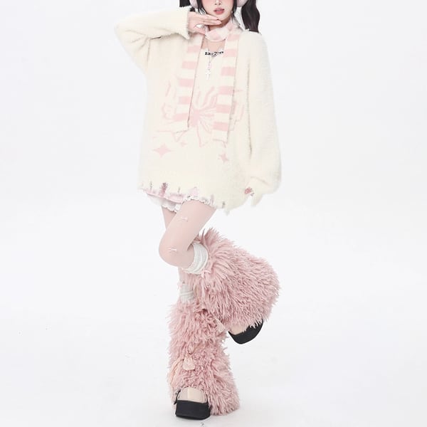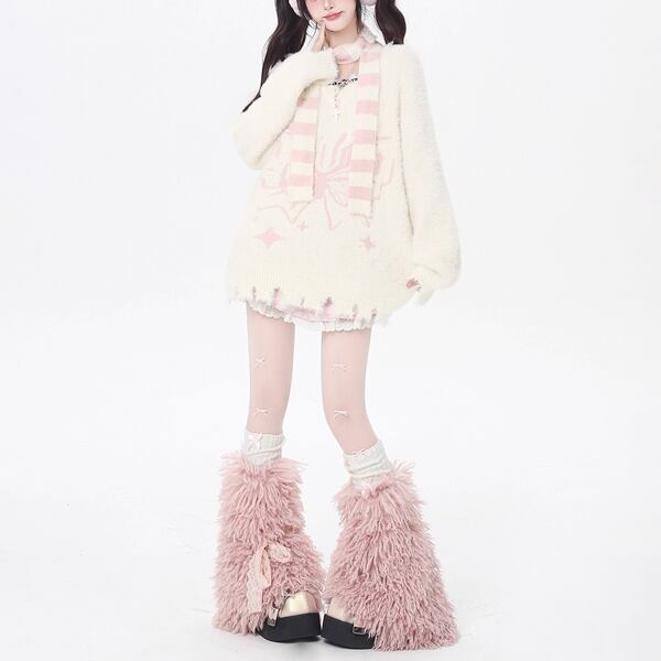 セットアップボーダーストールバタフライシルエットダメージニット(2カラーあり)(lli_6380)