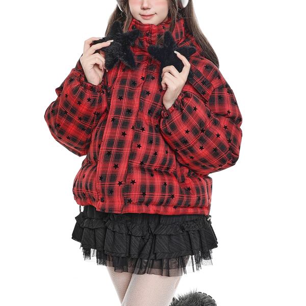 スターコードフーディジップアップチェックパターンジャケット(2カラーあり)(lli_6384)