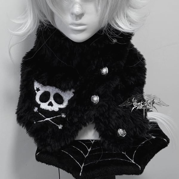 スカルキャットボタンネックウォーマー(ブラックとグレーボーダー2カラーあり)(lli_6386)