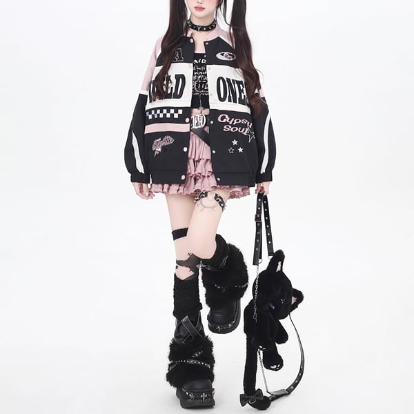 ブラックピンク2wayショートロングレーサーボタンジャケット(lli_6398) | lunaly