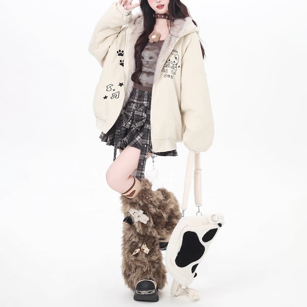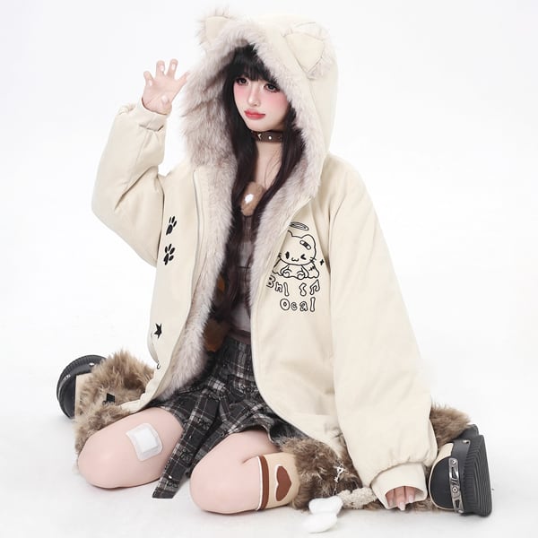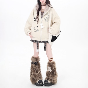 猫耳ファーエッジフーディキルティングジップアップアプリコットジャケット(lli_6400)