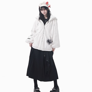 ホワイトクマ耳フーディジップアップスリーブバックルスターボアジャケット(lli_6401)