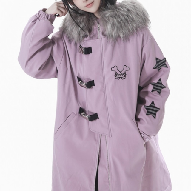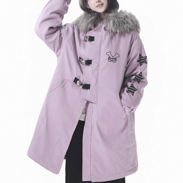 ファーエッジフーディドッグボーンストラップグレーパープルモッズコート(lli_6402)