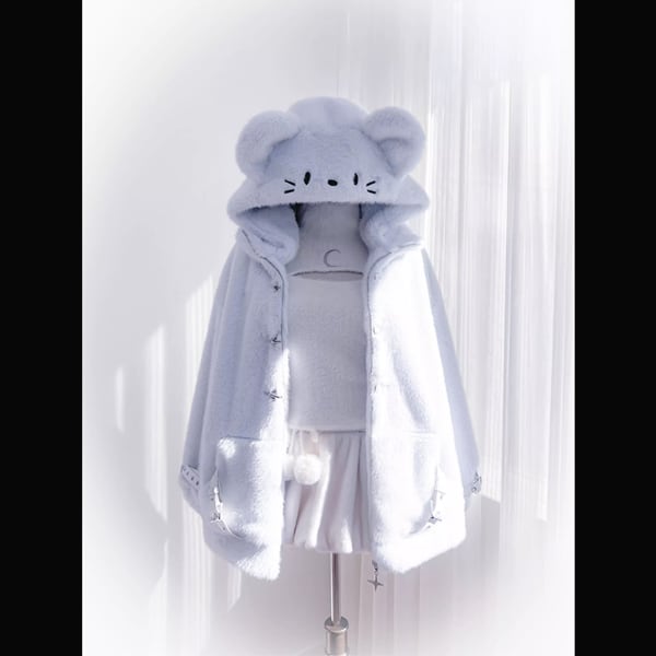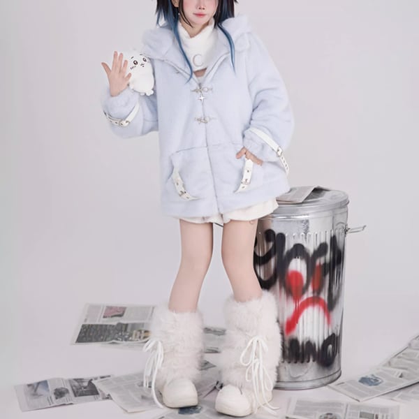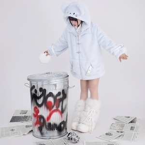 モコモコマウスフーディファイヤーマンバックルジップアップアイスブルーパンクジャケット(lli_6404)